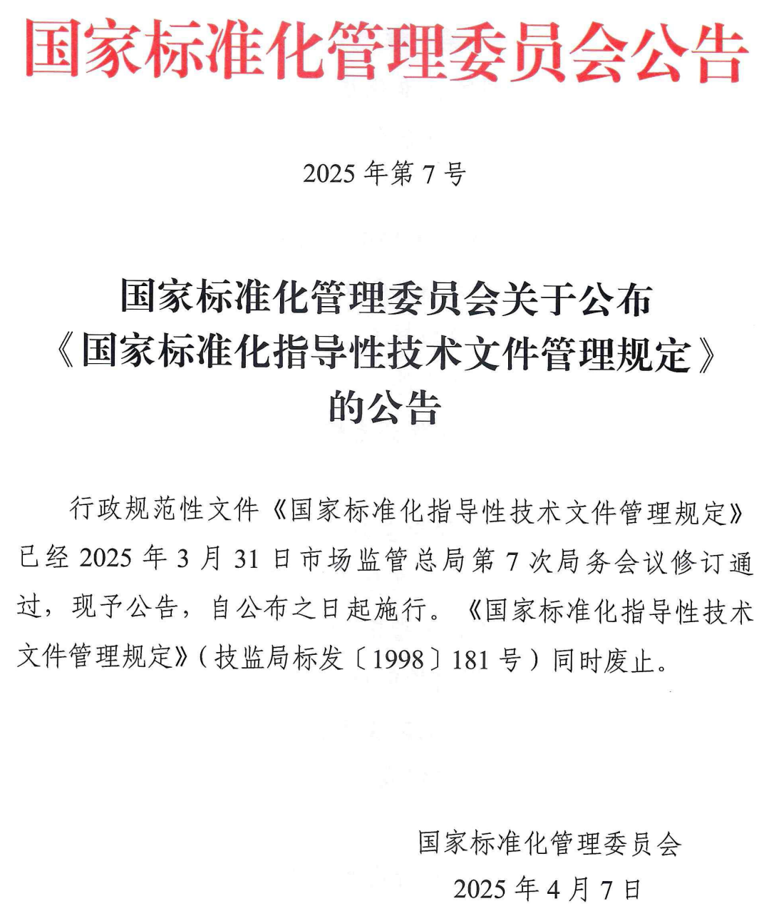 國家標準化管理委員會關于公布《國家標準化指導性技術文件管理規定》的公告.pdf