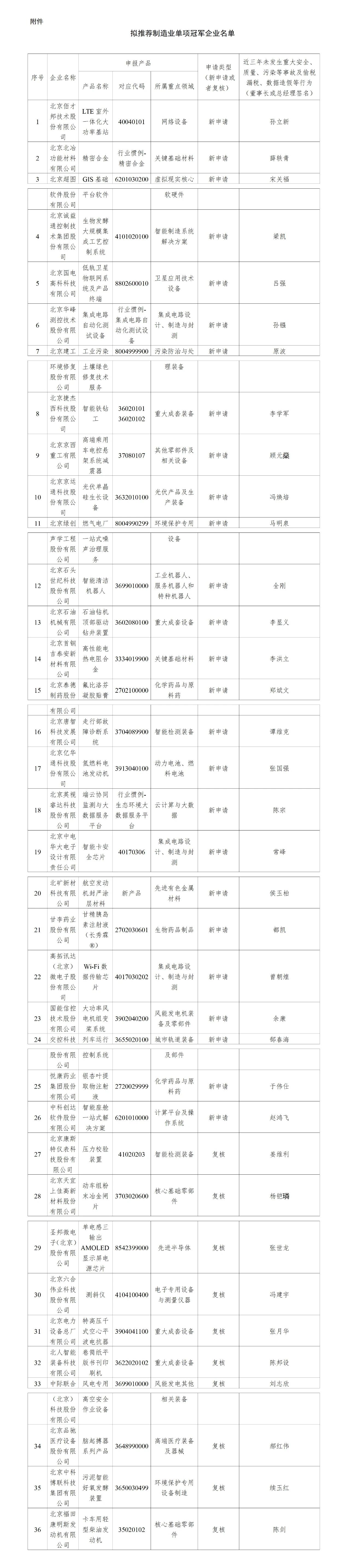 北京市經信局 | 關于擬推薦制造業單項冠軍企業名單的公示(36家)