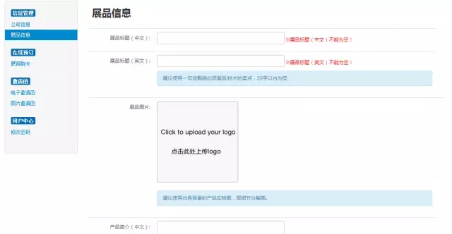 可自主編輯公司信息和展品信息,中英結合,圖文并茂,作為后期線上推廣內容。