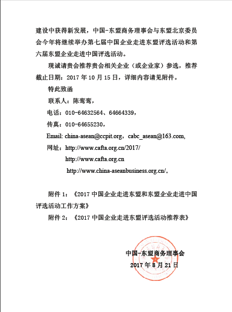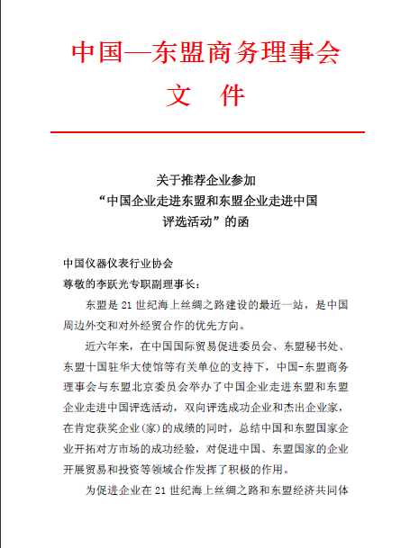 關(guān)于推薦企業(yè)參加 “中國(guó)企業(yè)走進(jìn)東盟和東盟企業(yè)走進(jìn)
