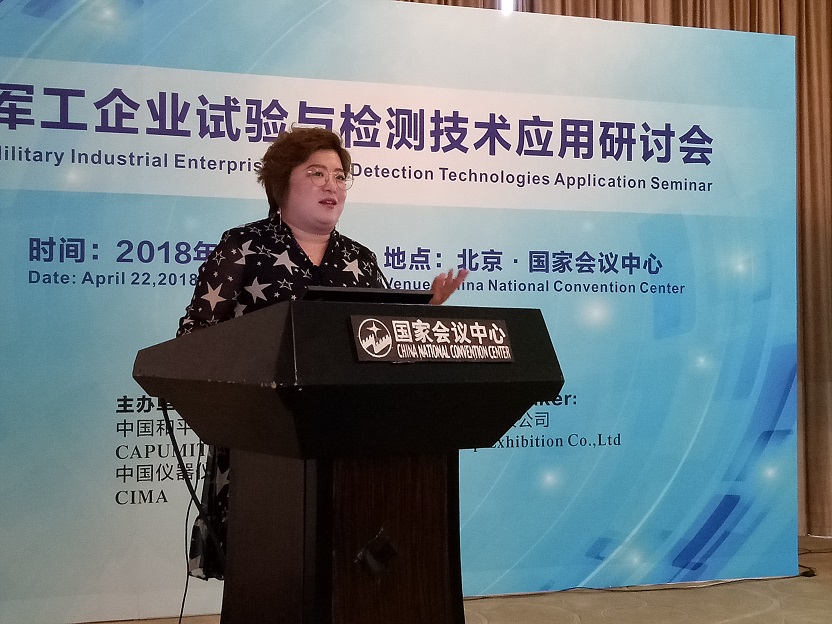 422日,CISILE 2018同期活動——由中國和平利用軍工技術協會和中國儀器儀表行業協會聯合舉辦的軍工行業試驗與檢測技術應用研討會在北京國家會議中心舉行。