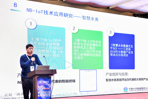 寧波水表股份有限公司所屬浙江省水表研究院院長婁嘉駿博士應(yīng)邀參會,并在“智慧水務(wù)應(yīng)用論壇” 中做了主題為“NB-IOT技術(shù)在智慧供水中的應(yīng)用探討”的演講。婁院長圍繞企業(yè)概況、主要技術(shù)與產(chǎn)品、NB-IOT產(chǎn)品設(shè)計(jì)、NB-IOT產(chǎn)品應(yīng)用等四個方面進(jìn)行了闡述,旨在進(jìn)一步加強(qiáng)與行業(yè)專家、學(xué)者的交流與合作,共同探討新形勢下智慧水務(wù)行業(yè)的發(fā)展之路。
