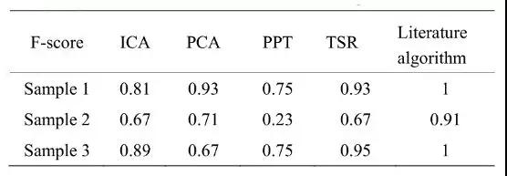 另外作者針對復合材料出現的脫粘缺陷采用了不同的圖像序列算法進行實驗對比,包括溫度信號重構、脈沖相位法、主成分分析、獨立成分分析,最終證明TSR和PCA在缺陷特征提取方面效果更好,如表3。再采用區域生長法對TSR獲得的特征圖進行分割和K最鄰近(K-nearestneighbor,KNN)分類算法進行分類識別,最終成功檢測出金屬結構材料的全部缺陷(最小直徑2mm)和蜂窩芯結構材料大于3mm的缺陷。