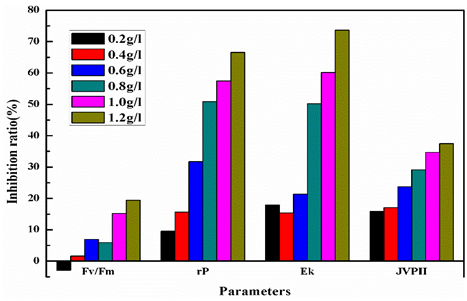 該項(xiàng)研究以葉綠素?zé)晒鉃樵孱惞夂献饔眠^程探針,開展了苯酚急性毒性作用下的72小時(shí)與70分鐘內(nèi)蛋白核小球藻的光合抑制試驗(yàn),研究了不同毒性強(qiáng)度下藻類各光合活性參數(shù)的響應(yīng)規(guī)律。結(jié)果表明苯酚急性毒性對(duì)光合活性參數(shù)Fv/Fm、rP、α、Ek、JVPⅡ的抑制效應(yīng)顯著,5分鐘內(nèi)毒性效應(yīng)就能達(dá)到穩(wěn)定。研究結(jié)果為水質(zhì)生物毒性檢測(cè)、生態(tài)毒理學(xué)研究及毒性物質(zhì)快速檢測(cè)等提供了一種新方法。