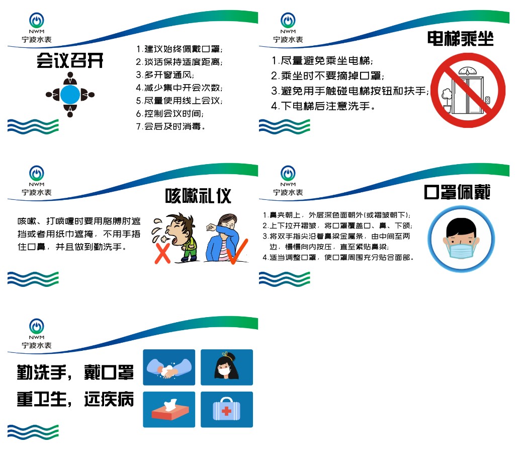 2020年2月8日,寧波水表在公司“創意魚群”等微信公眾號上發布《寧波水表—安全生產思維阻擊疫情》等宣傳資料,并號召全員積極轉發朋友圈、各類微信群,通過對疫情期間防護工具、防疫要素等相關知識的教育宣傳,進一步提高全司員工及公眾對疫情的自我防護意識。