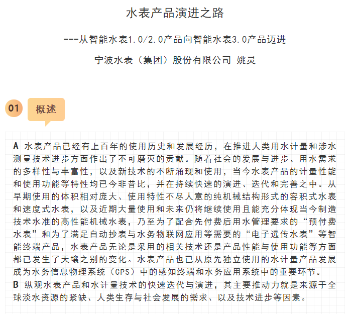 核心閱讀:寧波水表(集團)股份有限公司是中國儀器儀表行業協會行業協會副理事長單位,是一家具有六十余年歷史的水計量行業領軍企業,隨著科學技術的發展,公司率先啟動智能水表的商用研究。本文介紹一下寧波水表(集團)股份有限公司和智能水表3.0產品(管網參數綜合采集中心專題)的詳細情況。