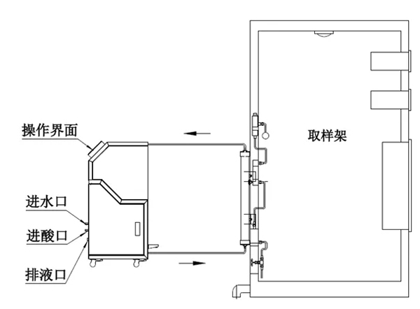 現場需要具備的條件是:樹脂柱材質可耐酸堿,取樣架有空間安裝備用柱,取樣車間可存放再生設備(設備內含30L 5%HCl酸桶)。