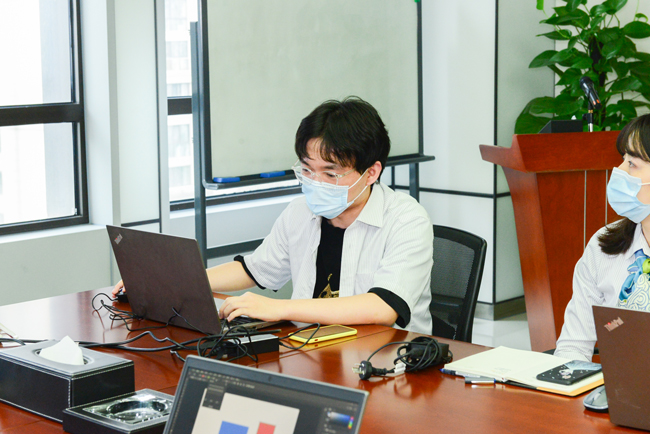 優(yōu)倍電氣營銷中心平面設(shè)計(jì)師小朱擔(dān)任本次成長課程的講師,他認(rèn)真?zhèn)湔n,深入簡出,為同事們的職場技能“加餐”。