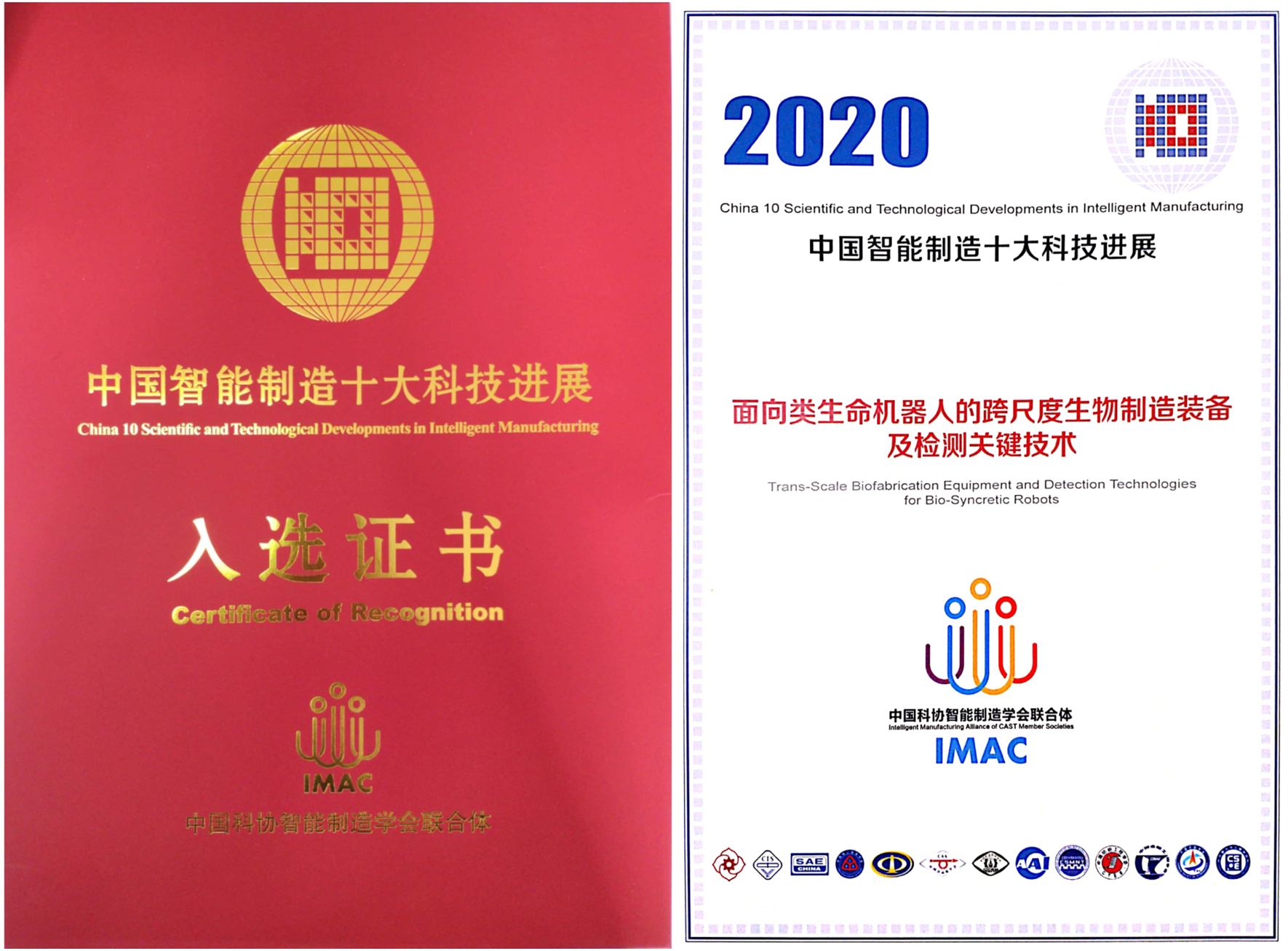 11月26日-28日,2020世界智能制造大會在南京舉行。本屆大會由中國科協、中國工程院、工業和信息化部、江蘇省人民政府共同舉辦。會議期間,中國科協智能制造學會聯合體發布了“2020中國智能制造十大科技進展”成果名單,中國科學院沈陽自動化研究所“面向類生命機器人的跨尺度生物制造裝備及檢測關鍵技術”成功入選。