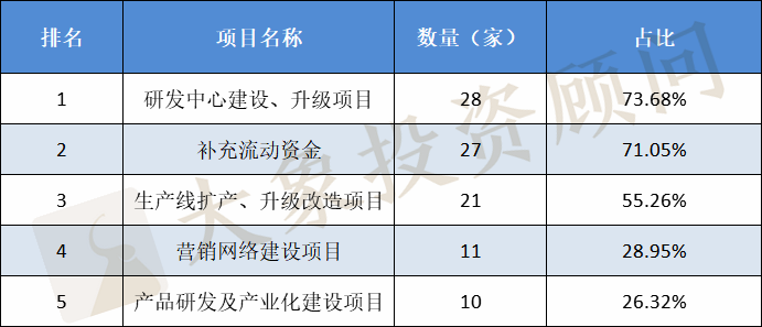 2015-2020 年期間新上市的38家企業(yè)的 IPO 募投項(xiàng)目主要有以下幾個(gè)方面: