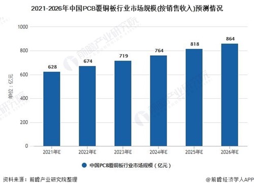 2021-2026年中國PCB覆銅板行業市場規模(按銷售收入)預測情況