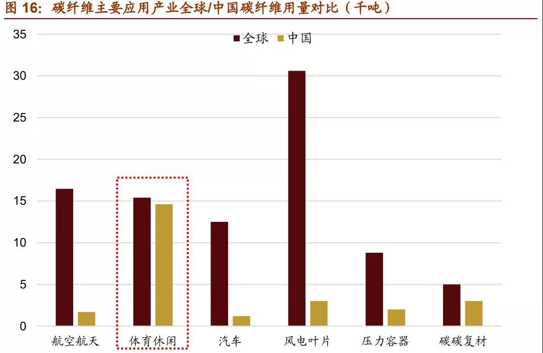 需求層面,碳纖維市場的四大應用行業是航空航天、風電葉片、體育休閑、汽車,2020 年四大下游行業碳纖維需求量的占比超過 70%,產值占比超過 76%