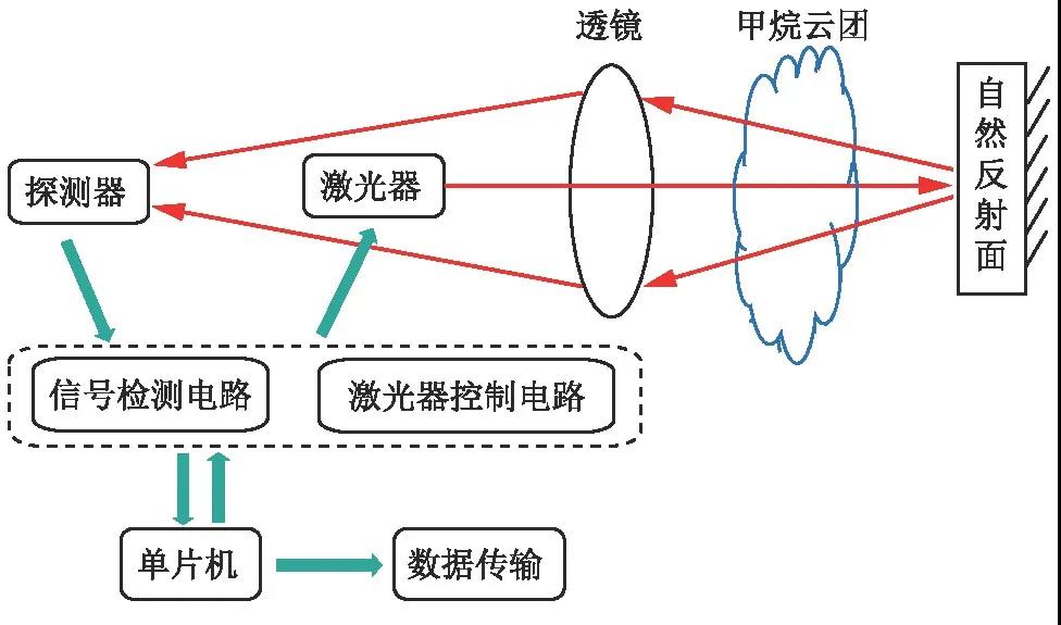 激光檢測模塊主要由激光信號收發(fā)單元、信號控制采集處理單元、主控與數(shù)據(jù)傳輸單元3部分組成。其中,激光信號收發(fā)單元由激光器、探測器、透鏡組成;信號控制采集處理單元包括激光器控制電路與信號檢測電路;主控與數(shù)據(jù)傳輸單元主體結(jié)構(gòu)為單片機(jī),其主要作用為向信號控制采集處理單元發(fā)送指令并接收信號,同時進(jìn)行外部數(shù)據(jù)的傳輸。