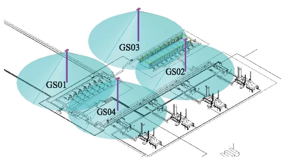 該系統(tǒng)在中哈天然氣管道C線某壓氣站的工藝區(qū)內(nèi)安裝使用,在該壓氣站工藝區(qū)內(nèi)安裝4臺掃描式激光氣體傳感器。為形成對管道設(shè)備的覆蓋式監(jiān)測,通過分析氣體泄漏擴(kuò)散規(guī)律與場區(qū)管道設(shè)備的分布,將4臺傳感器的安裝高度統(tǒng)一定為9m,其中過濾分離區(qū)與空冷區(qū)的兩臺傳感器借助照明塔進(jìn)行安裝,壓縮機(jī)區(qū)的兩臺傳感器使用監(jiān)控專用立桿進(jìn)行安裝。數(shù)據(jù)傳輸系統(tǒng)安裝在監(jiān)控立桿下方防爆箱內(nèi),借助其完成氣體傳感器的信號轉(zhuǎn)化與傳輸;通信光纜與電纜采用直埋方式敷設(shè),與站控室的預(yù)警終端連接;預(yù)警監(jiān)控終端安裝在站控室,由站場工作人員實(shí)時監(jiān)控工藝區(qū)可燃?xì)怏w濃度。