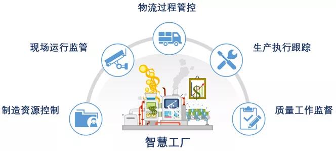 智慧工廠包含工廠運營管理的五個方面,制造資源控制、現場運行監(jiān)管、物流過程管控、生產執(zhí)行跟蹤、質量工作監(jiān)督等。