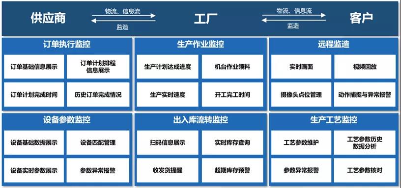 隨著制造企業(yè)對內部生產過程管理能力的提高,促生出了上下游監(jiān)造管理的需求,一方面是對供應商原材料質量管控的進一步延伸,另一方面是對客戶滿意度更加重視的表現。從供應商到工廠到最終客戶的三位一體監(jiān)造平臺,是智慧工廠的核心應用場景。