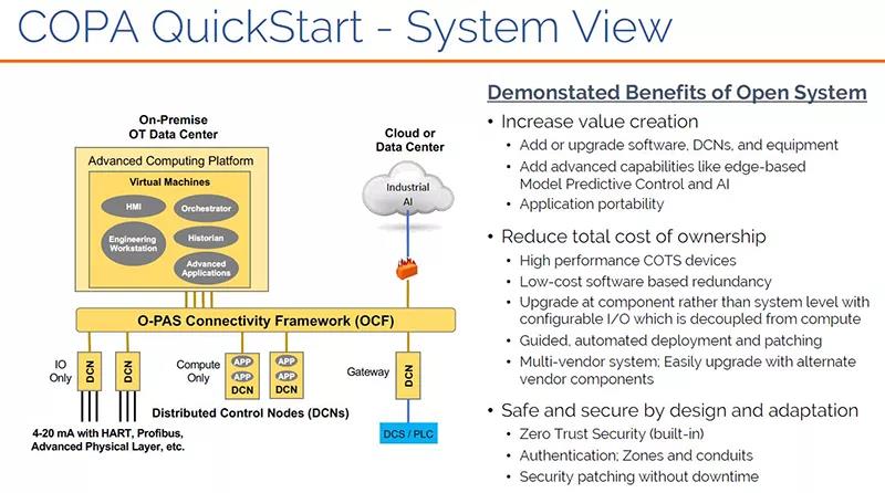 這個COPA的來頭也不小,是一個由領先的IT和OT技術公司組成的多元化集團,由設在德克薩斯州奧斯汀的CSI公司(Collaborative Systems Integration of Austin, Texas)和加州硅谷的人工智能公司CPLANE.ai兩個新進者領導。其合作伙伴包括經驗豐富的自動化硬件和軟件的制造商,如Phoenix Contact、R. Stahl、Supermicro、Nova SMAR和CODESYS。Don Bartusiak是CSI的創始人和總裁。在2016年佛羅里達州奧蘭多ARC論壇上,時任埃克森美孚專司流程控制職責的總工程師,他發表了引人注目的演講,宣布了埃克森美孚下一代多供應商自動化架構計劃,成為了開放流程自動化的重要創導者。他描述了行業是如何受夠了專有封閉的傳統DCS系統的苦衷,未來將屬于基于多供應商互操作標準的、開放的、安全的、可互操作的架構,以及以商品形式供應的軟件和硬件組件。為什么要成立COPA呢?Don Bartusiak強調說:一些工業自動化的大牌制造商“反復告訴我,如果O-PAS系統可用,他們會購買它們。”言下之意是這種開放系統遠不是那么容易搞出來的。“COPA快速入門是我們應對這一挑戰的答案。”隨著COPA快速啟動Quick Start的發布,聯盟正在利用OPAF成員多年來的研究、合作和投資,將基于開放、安全和互操作架構的行業標準構建的ICS系統推向市場。