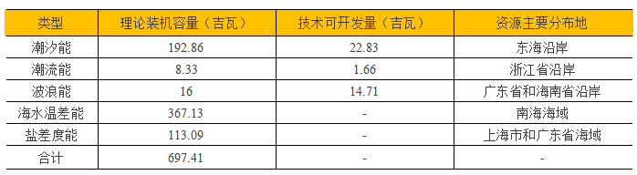據(jù)聯(lián)合國環(huán)境署數(shù)據(jù)顯示,溫差能、波浪能、鹽差能和潮汐/潮流能開發(fā)潛力分別占到了全球海洋能開發(fā)潛力的58%、39%、2%和2%。其中,我國海洋能發(fā)電蘊藏量約占全球海洋能總蘊藏量的8%,近海海洋能資源理論裝機容量約為697吉瓦,技術(shù)可開發(fā)量超過70吉瓦;深遠海海域的波浪能資源遠超近海海域,同時具有豐富的洋流能資源。