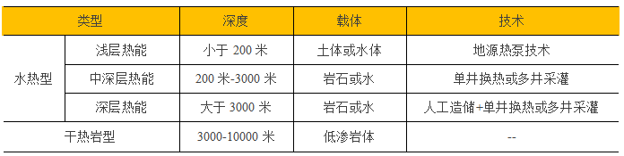 地熱能是一種低碳環(huán)保、穩(wěn)定高效的清潔可再生能源,與其他可再生等能源相比,具有不受季節(jié)、氣候、晝夜等外界因素干擾的優(yōu)點,其發(fā)電利用效率達73%,約為太陽能的5.2倍、風能的3.5倍,主要類型包括水熱型和干熱巖型。