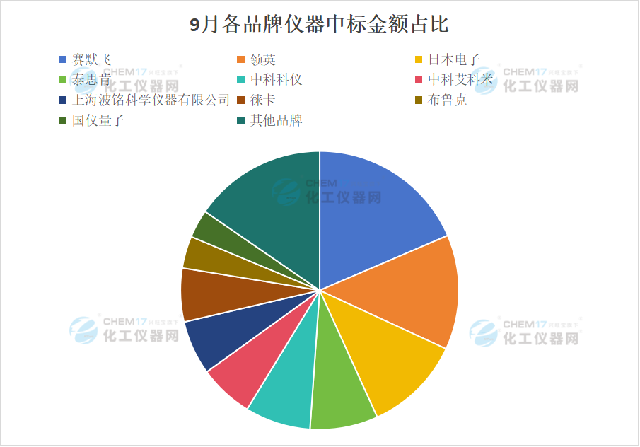 20239月各品牌電鏡中標(biāo)金額占比”中僅詳細(xì)展示了中標(biāo)金額的比例,其余1個歸為其他品牌。電鏡“頭部品牌”占據(jù)了9月電鏡大部分市場份額,從餅圖中可以看出,在9月中標(biāo)的10個品牌中,僅賽默飛1家企業(yè)的中標(biāo)金額就達(dá)到了1174.52萬元人民幣,占到所有品牌中標(biāo)金額的16.77%