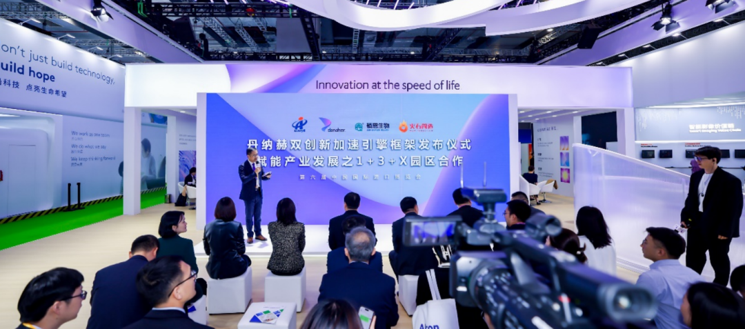 圖片▲第六屆進(jìn)博會之際,丹納赫就“1+3+X”產(chǎn)業(yè)創(chuàng)新轉(zhuǎn)化加速器分別與商務(wù)部投資促進(jìn)局、植恩生物、火石創(chuàng)造宣布合作