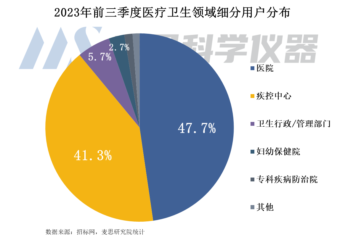 從醫療衛生領域各客戶類型采購質譜儀器的數量來看,醫院采購量占比排名第一,占比47.7%。其次是疾控中心,占比41.3%
