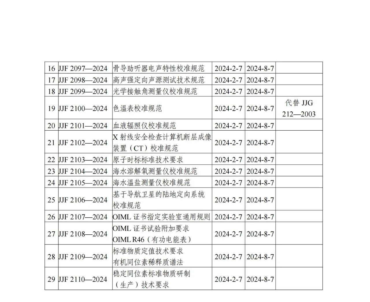 國家計量技術規(guī)范的公告