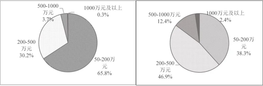 2 不同原值區間質譜儀器數量(左、臺/套)與原值(右、億元)分布