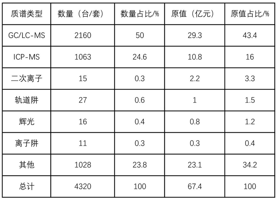 3.2 近年來國內進口質譜儀器的主要類型