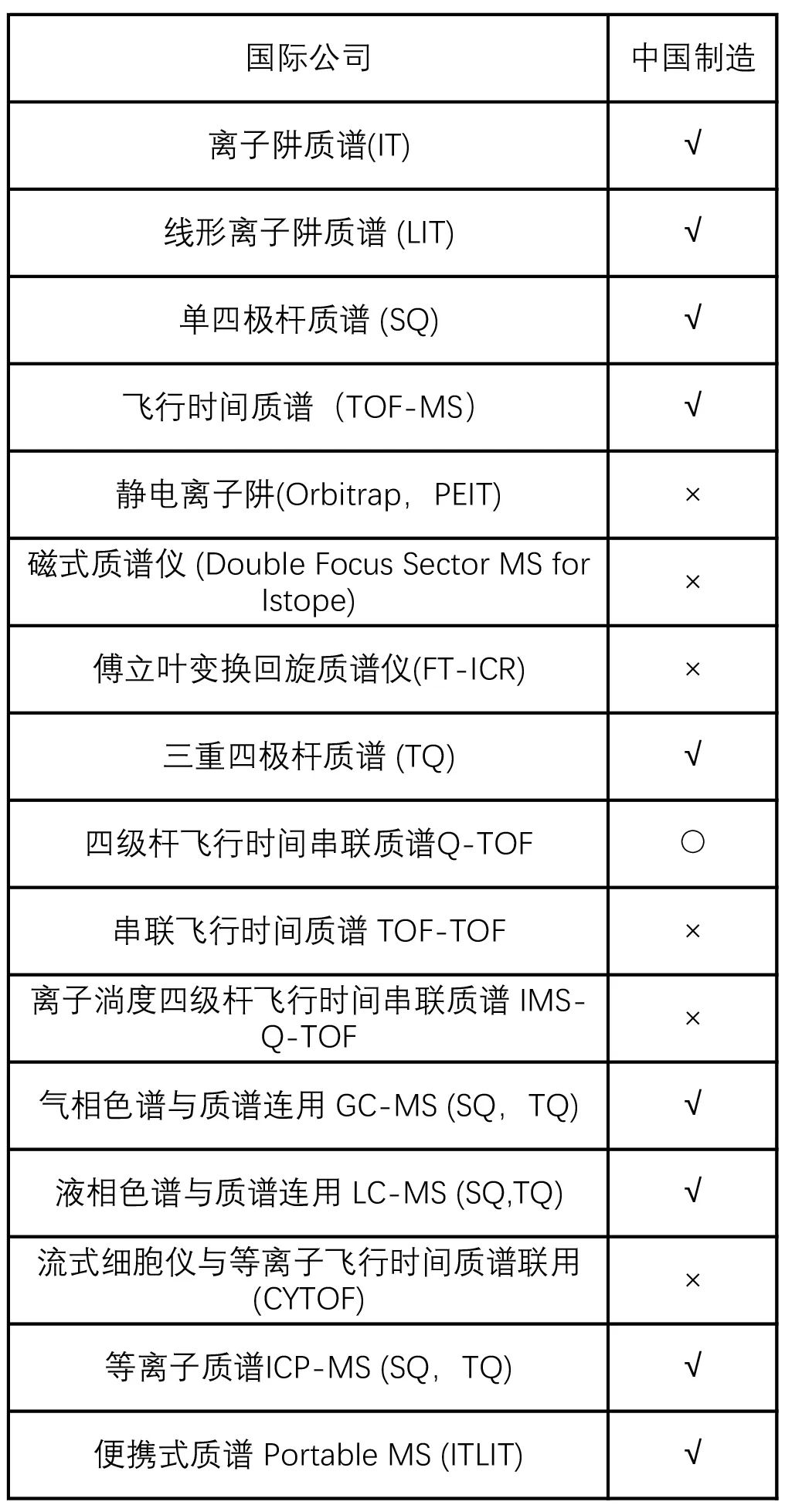 7 國內外質譜儀器產品類型對比