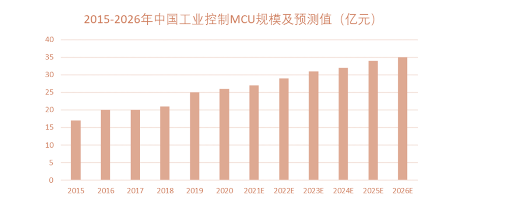 全球工業(yè)自動化與控制市場的廣闊前景,勢必強勁推動MCU需求增長。據(jù)統(tǒng)計,2020年工控對MCU需求規(guī)模達(dá)到26億元,預(yù)計至2026年,市場規(guī)模將達(dá)到35億元。