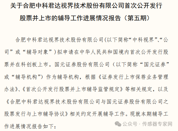 20233月,中科視界與國元證券簽署上市輔導協議,截止202479日,已完成第五期上市輔導工作。
