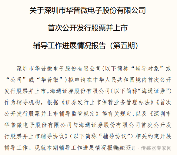 2023116日,華普微與海通證券簽署上市輔導協議,截止2024410日,華普微已完成第五期上市輔導工作。