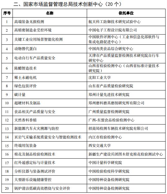 依據(jù)《國家市場監(jiān)管重點實驗室管理暫行辦法》《國家市場監(jiān)管技術創(chuàng)新中心管理暫行辦法》要求,市場監(jiān)管總局科技和財務司組織完成了2023年度總局重點實驗室和技術創(chuàng)新中心申報項目的評審工作。經(jīng)組織申報、形式審查、集中評審、現(xiàn)場核查和綜合論證等程序,擬批準建設重點實驗室40個、技術創(chuàng)新中心20個,現(xiàn)予以公示。