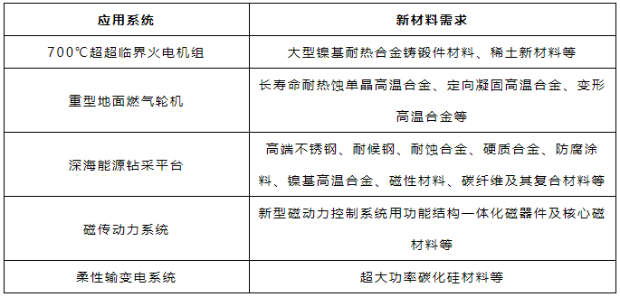 表2 能源動(dòng)力領(lǐng)域新材料需求