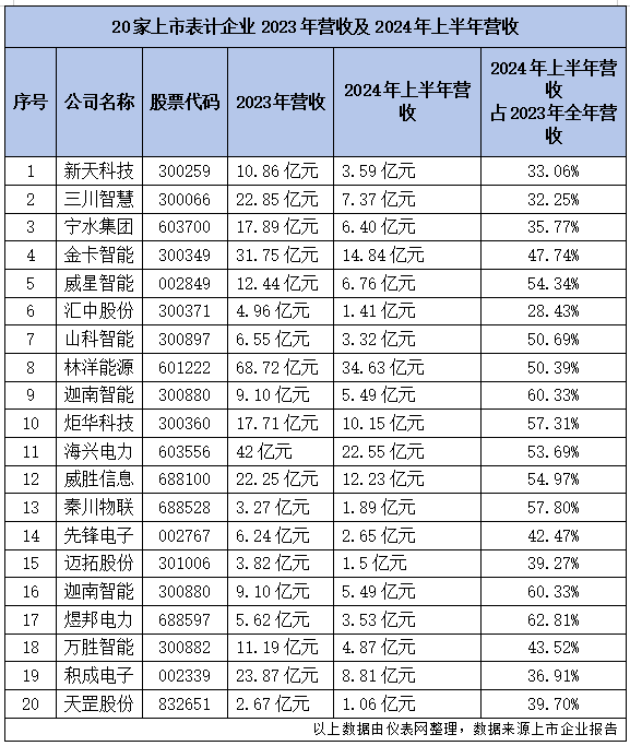 儀表網整理了20家上市表計企業2023年營業收入以及2024年上半年營業收入數據,從中一窺我國表計產業今年和明年發展態勢。