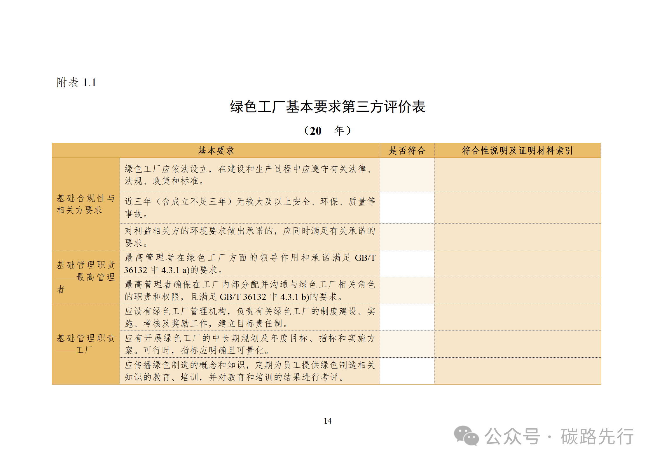 ①綠色工廠基本要求的符合情況;②6個一級指標;③加分項:“零碳”工廠創(chuàng)建方面開展的工作情況。