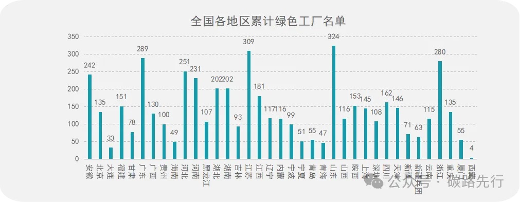 根據統計,全國綠色工廠累計申報最多的地區(qū)分別為山東省、江蘇省、廣東省和浙江省。