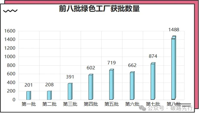工信部自2017年以來開始組織全國性的綠色工廠評選活動,到2023年為止,累計公布了八批次綠色工廠名單,獲批數量達到5145家,其中,2022年動態(tài)調整移除綠色制造名單41家綠色工廠,2023年動態(tài)調整移除綠色制造名單9家綠色工廠,國家層面累計培育綠色工廠5095家。
