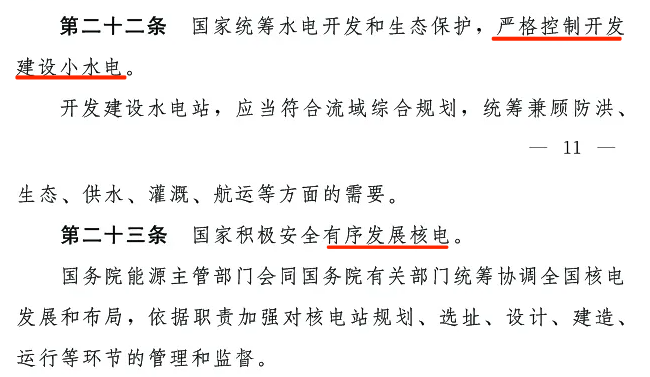第二十二條:國家統(tǒng)籌水電開發(fā)和生態(tài)保護,嚴格控制開發(fā)建設小水電。