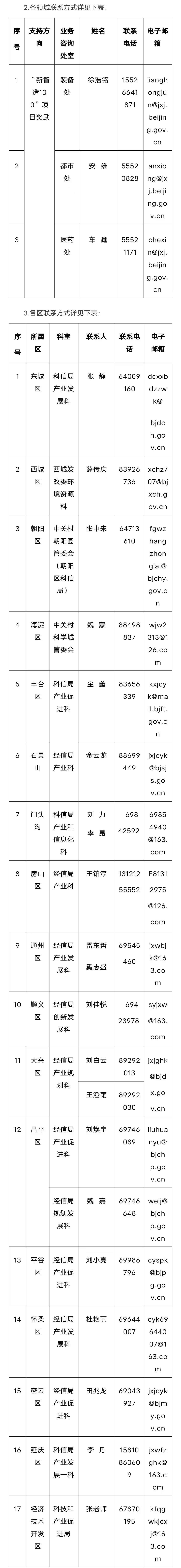 2.各領域聯系方式詳見下表: