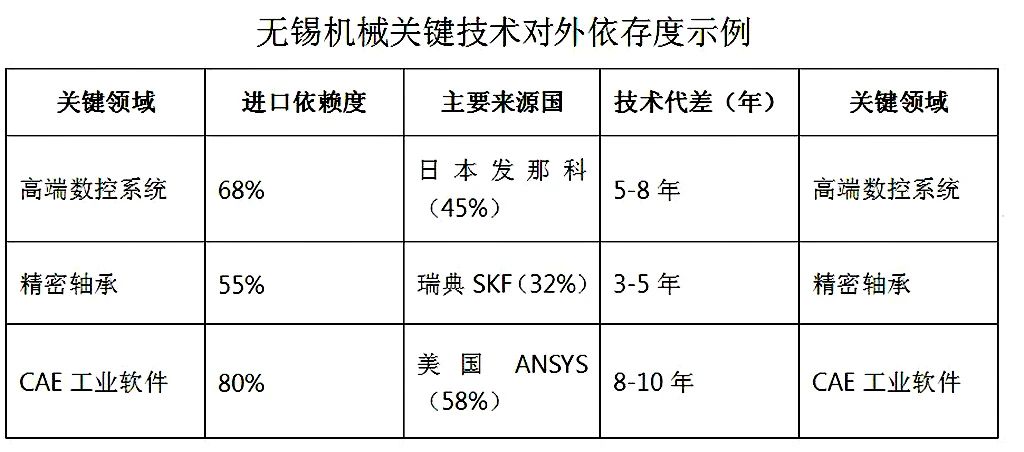 關鍵 卡脖子環節明顯,數控系統進口依賴度 68%,主要來源國為日本、德國;高端軸承進口依賴度 55%,主要來源國為瑞典、日本;工業軟件進口依賴度 80%,主要來源國為美國、法國。2024 年日本對華出口光刻機管制導致無錫半導體設備企業交付延遲 3 - 6 個月。這一事件凸顯了無錫機械工業在關鍵零部件和技術上的對外依賴風險,企業在供應鏈管理方面面臨著巨大挑戰。