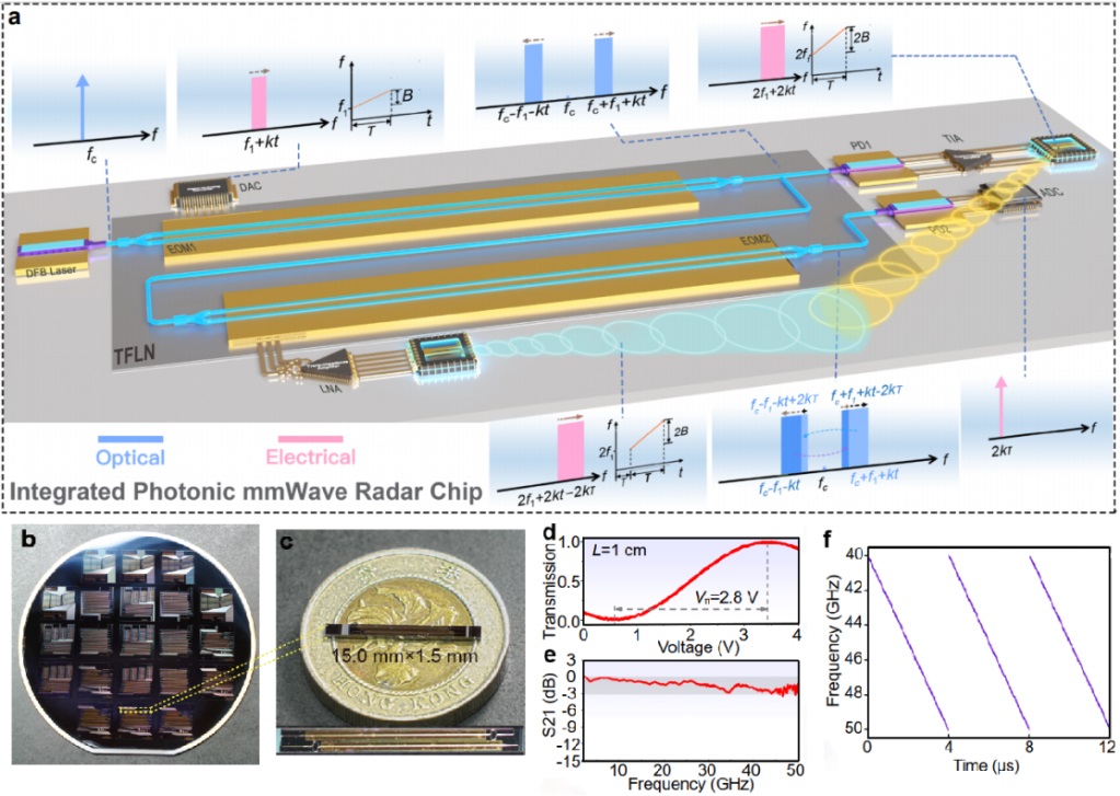 近日,中國(guó)科學(xué)院院士、南開(kāi)大學(xué)智能光子研究院院長(zhǎng)祝寧華團(tuán)隊(duì)與香港城市大學(xué)合作,成功研制出薄膜鈮酸鋰光子毫米波雷達(dá)芯片,在毫米波雷達(dá)領(lǐng)域取得重大突破。這一創(chuàng)新成果,為未來(lái)6G通信、智能駕駛、精準(zhǔn)感知等前沿領(lǐng)域的應(yīng)用奠定了堅(jiān)實(shí)基礎(chǔ)。