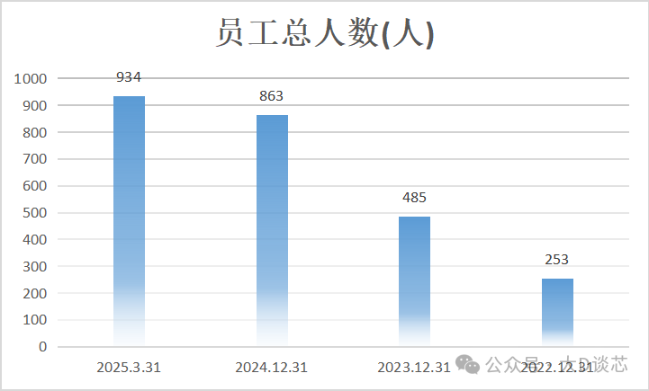 2022年至20253月,公司員工總人數隨著業務的發展也在不斷增加,人數分別是253485863934