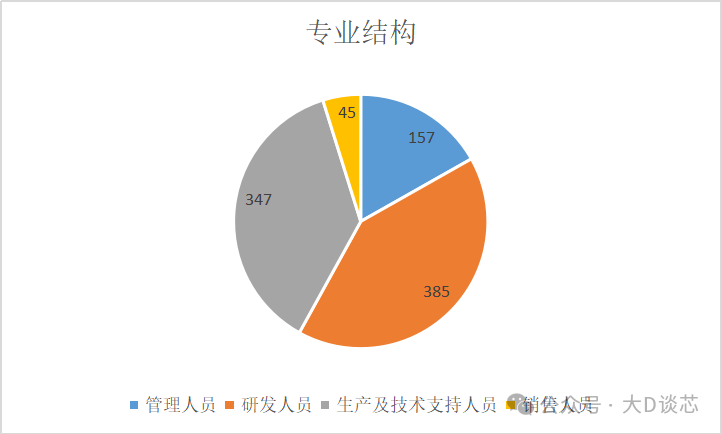 截至2025331日,公司員工的專業結構為管理人員157人(占比16.81%)、研發人員385人(占比41.22%)、生產及技術支持347人(占比37.15%)和銷售人員45人(占比4.82%)。