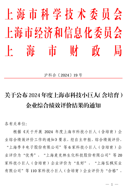 108日,上海市科學技術委員會、上海市經濟和信息化委員會、上海市財政局聯合發布了關于公布2024年度上海市科技小巨人(含培育)企業綜合績效評價結果的通知。自儀院下屬上海儀器儀表自控系統檢驗測試所有限公司(簡稱儀控所)作為科技小巨人企業本次評價為 “優秀