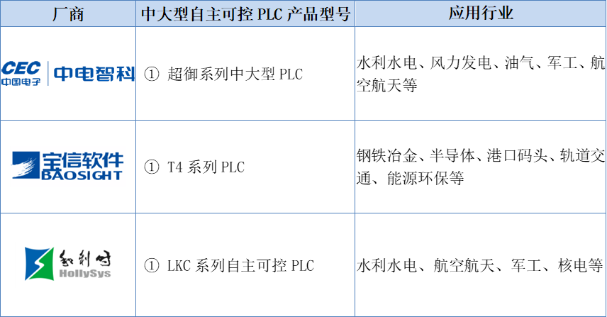 部分國產廠商中大型自主可控PLC產品