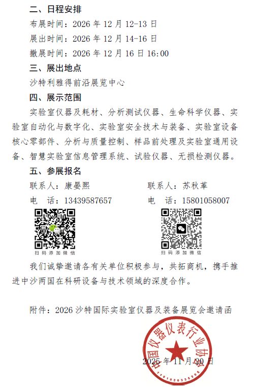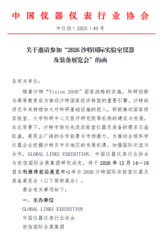 關(guān)于邀請(qǐng)參加“2026 沙特國(guó)際實(shí)驗(yàn)室儀器及裝備展
