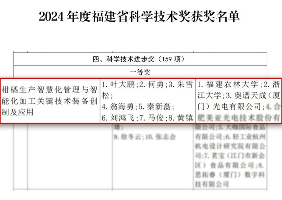 近日,奧譜天成憑借《基于高光譜多譜融合技術(shù)的柑橘生長全周期與品質(zhì)檢測系統(tǒng)》榮獲福建省科技進步一等獎。該獎項由福建省人民政府設(shè)立,是省內(nèi)最高級別的科技榮譽之一,重點表彰在技術(shù)創(chuàng)新、工程應(yīng)用及行業(yè)貢獻方面取得突出成果的單位。本次獲獎不僅體現(xiàn)了該項目在關(guān)鍵技術(shù)上的創(chuàng)新突破,也標志著奧譜天成在農(nóng)業(yè)智能檢測裝備領(lǐng)域的領(lǐng)先實力得到權(quán)威認可。