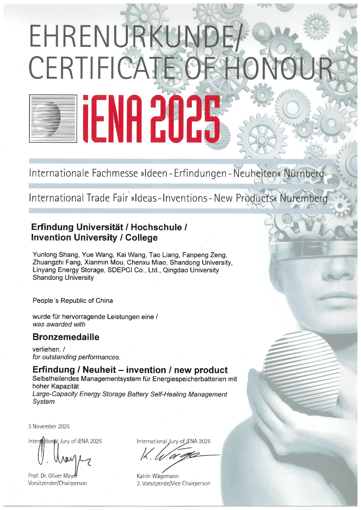 近日,江蘇林洋儲能技術(shù)有限公司聯(lián)合山東大學(xué)研發(fā)的“大容量儲能電池自愈管理系統(tǒng)”,在2025德國紐倫堡國際發(fā)明展(iENA)中成功斬獲獎項(xiàng)。這一成果,意味著該技術(shù)登上了全球發(fā)明創(chuàng)新領(lǐng)域的“殿堂級舞臺”。